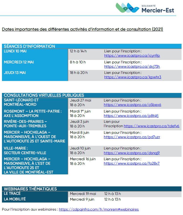 Nous vous invitons individuellement et collectivement à vous exprimer sur cet enjeu capital qui façonnera le visage de Mercier-Est pour plusieurs décennies. Lançons ensemble un blitz de diffusion et de promotion pour motiver une participation massive aux consultations publiques à travers tous les canaux possibles.